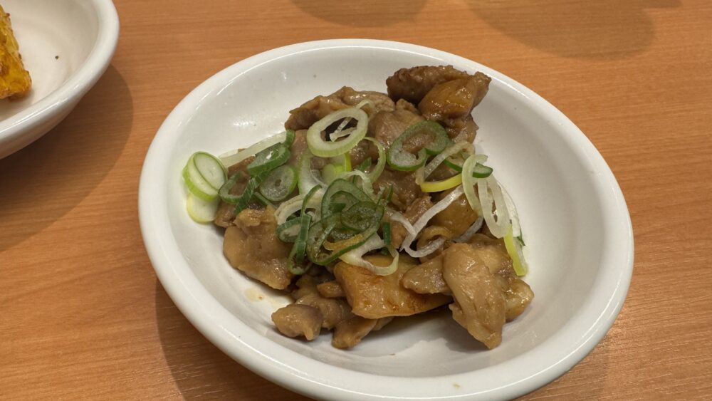 ▲まずはやきとりからが着皿。串なら3本分くらいありますね。