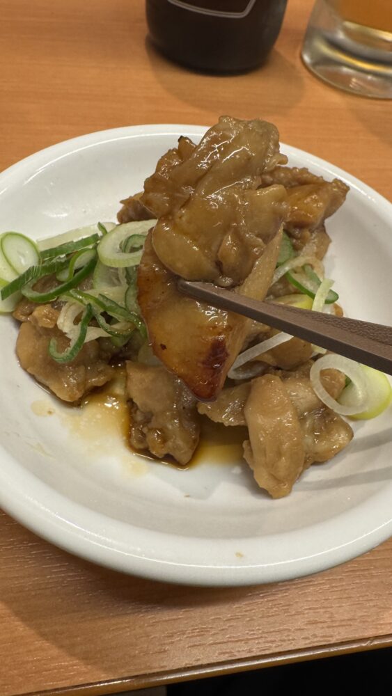 ▲鶏肉は柔らかく、甘辛で濃厚なタレが旨い。ちょっと濃いめなのでお酒が合います。