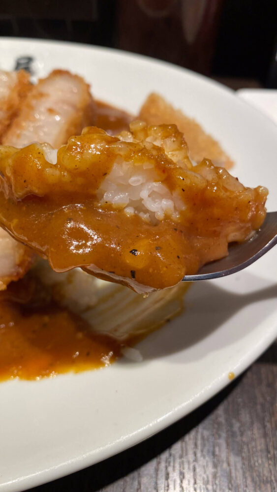 ▲大トロかつカレーが到着!メニュー名通り大ぶりなカツが乗っていてボリューミー。