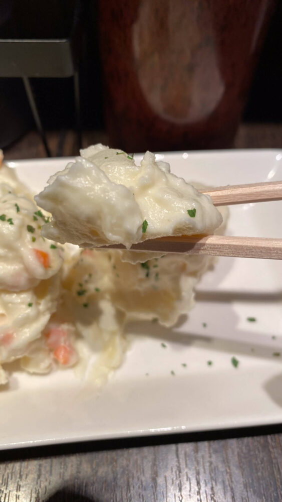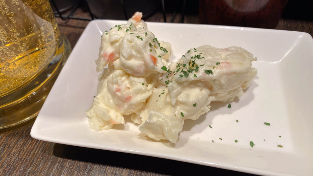 ▲ポテサラは気持ち濃いめな味付けでお酒が進みます。