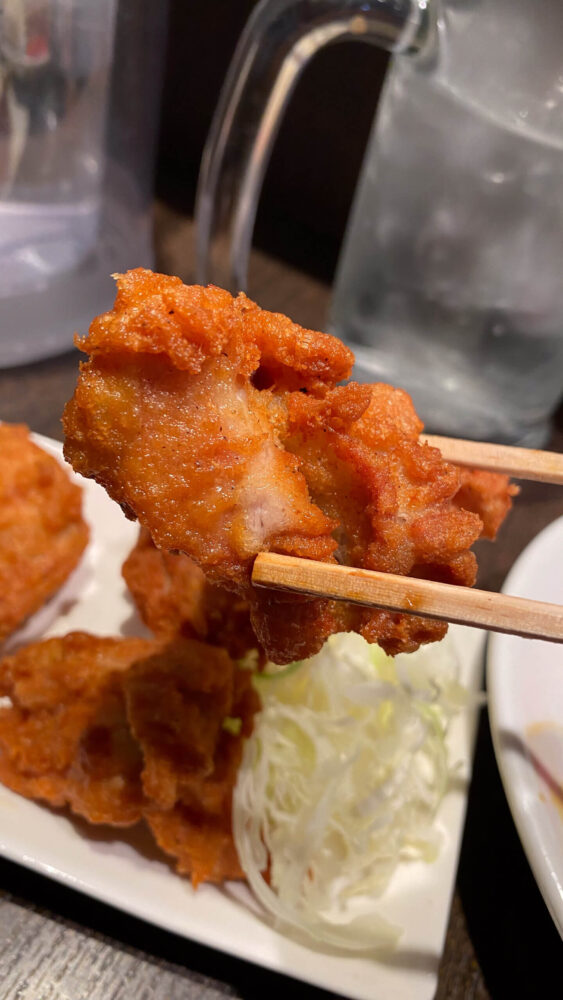▲唐揚げの外はカラッと中はジューシー。レモンサワーに合いました。