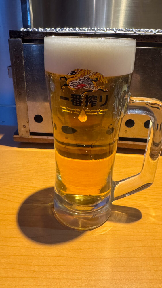 ▲1杯目は生ビール。仕事で疲れた身体に染み渡ってめちゃ旨。