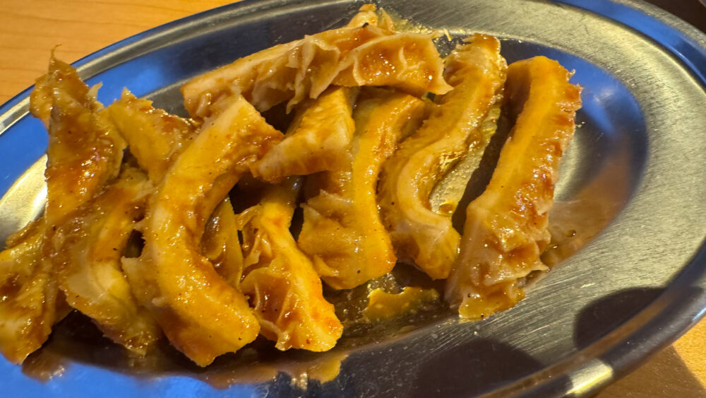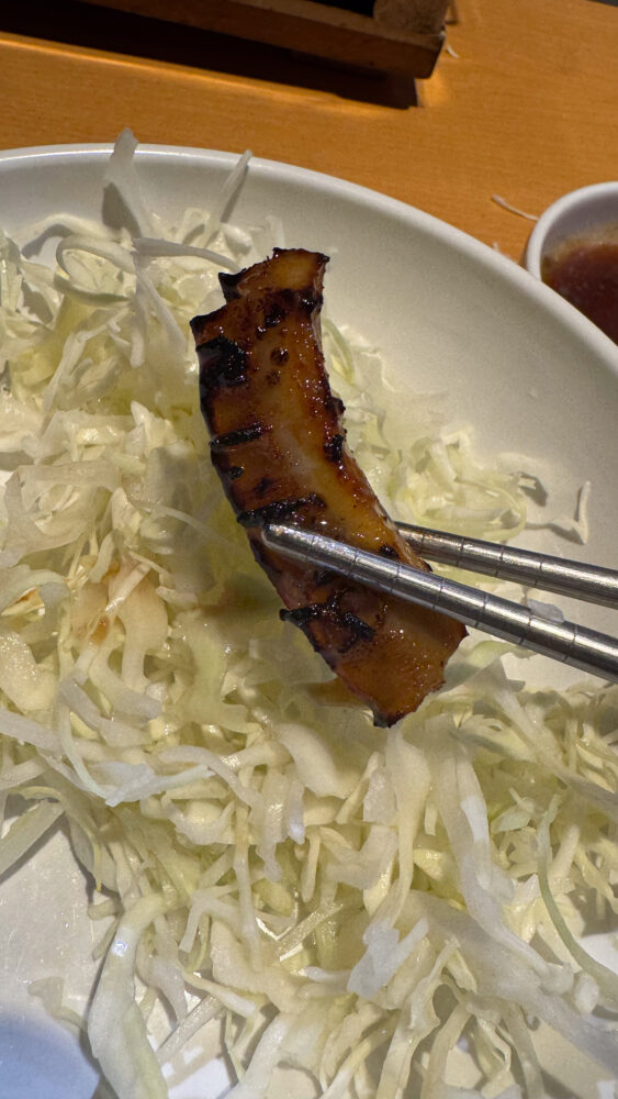 ▲牛ギャラもタレにつけて食べます。ムチっと食感で美味しい。