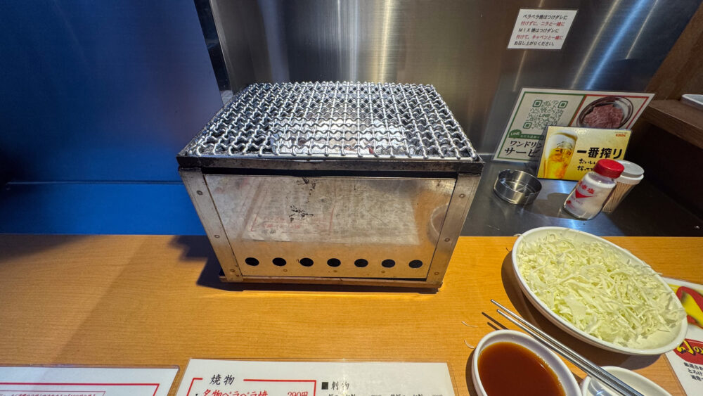 さらに、お通しのキャベツはお替り自由ですし、ペラペラ焼と他の焼物があれば辛ニラもお替り自由なのも嬉しいサービスですね。