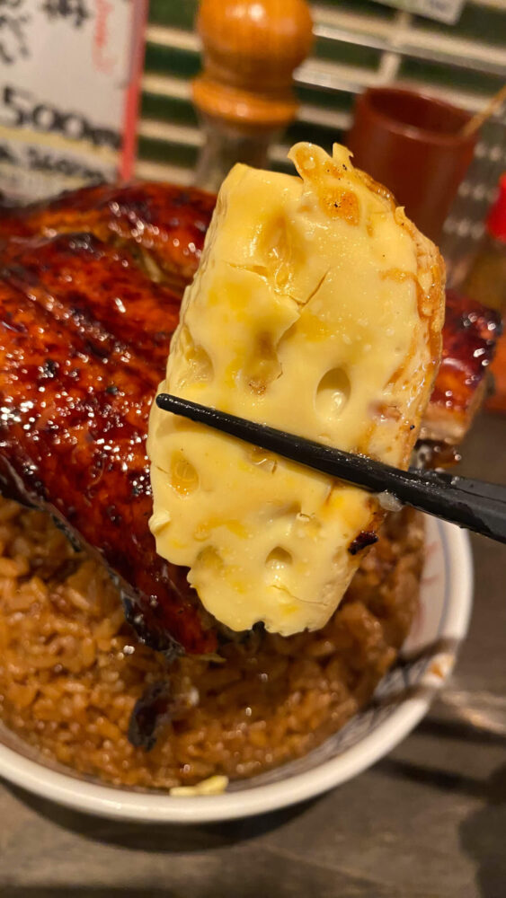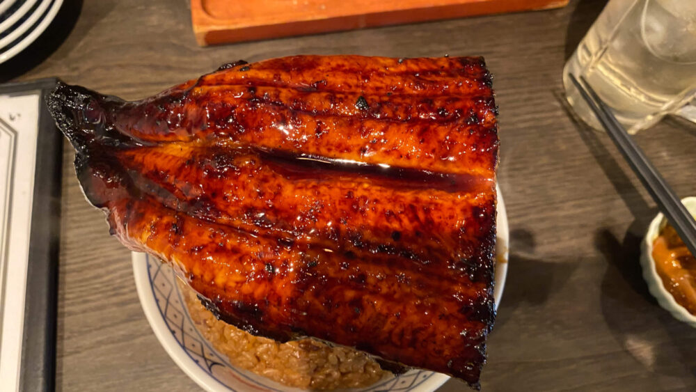 ▲上から見ると、鰻の蒲焼部分は大きく、下の部分がほぼ見えませんね。