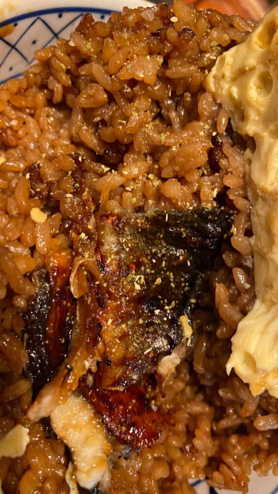 ▲ご飯部分はタレで炊きこまれた感じ。そのまま食べても美味しいです。