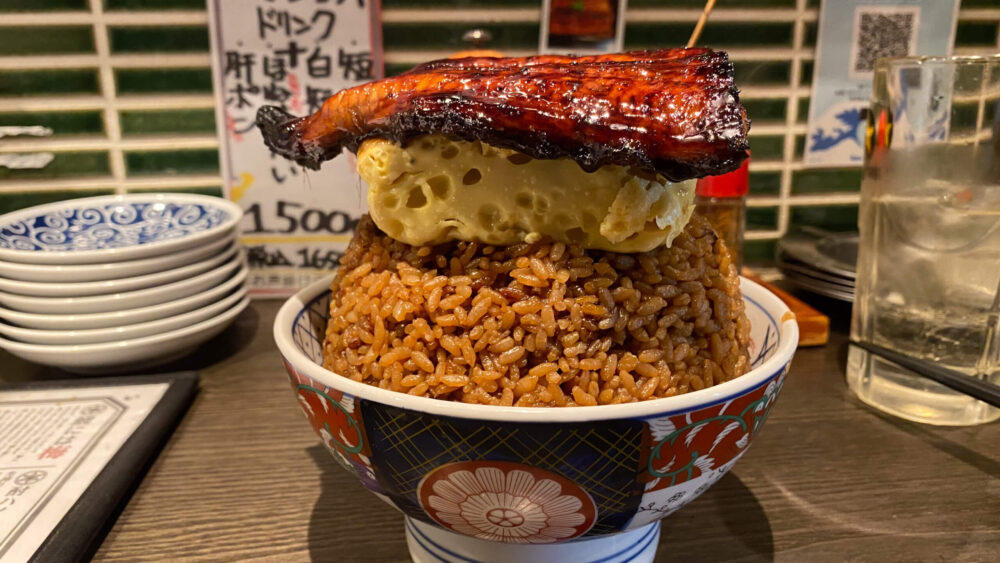 「ド~ンと!!そびえる鰻玉丼(ご飯750g)+肝+ハイボール+ゆずサワー」を実食!