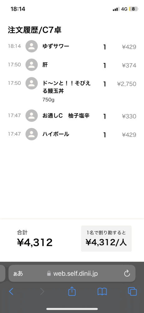今回はド~ンと!!そびえる鰻玉丼+肝+ハイボール+ゆずサワーを注文しました!