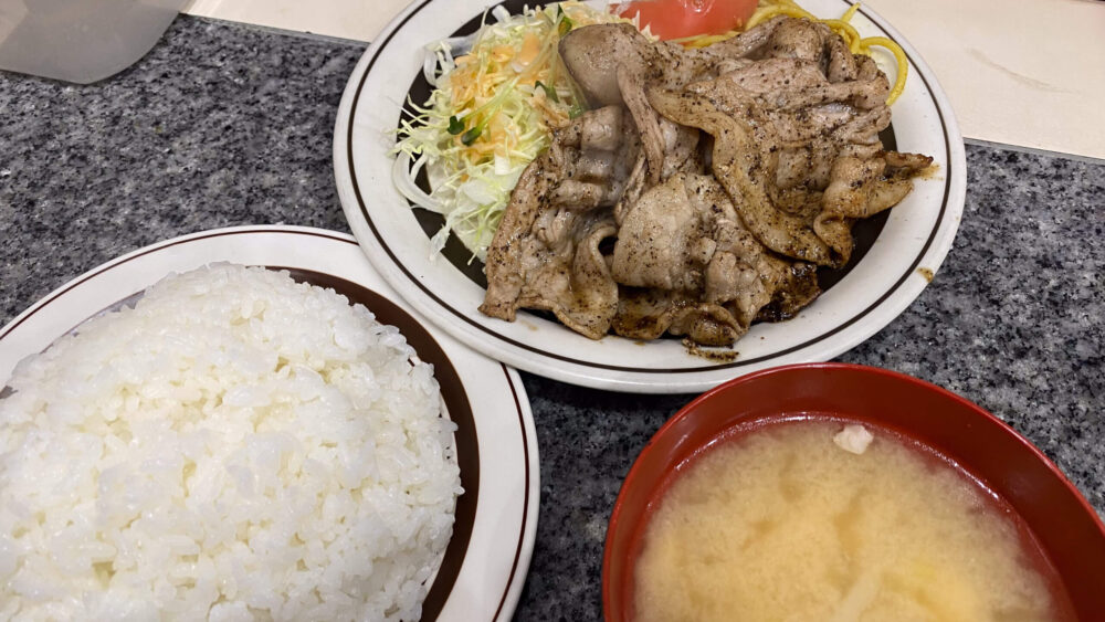 これでライス特盛にできますが、黒胡椒が効いたからし焼がご飯泥棒すぎて一瞬で完食してしまいました(笑)