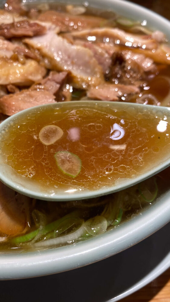 ▲淡麗系でごくごく飲める「THE中華そば」って感じのスープ。ただし、一般的なものよりやや濃いめ。