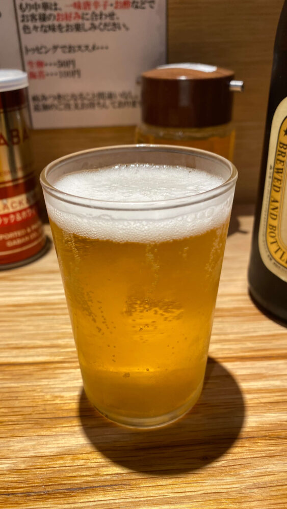今回はチャーシュー麺大+瓶ビールを注文しました!