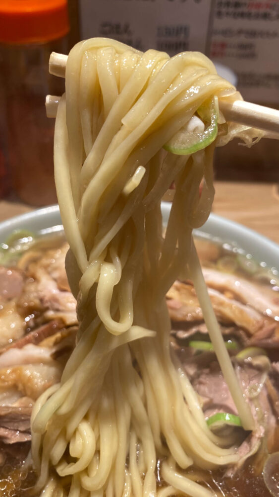 ▲平打ち気味の麺。加水率高めでツルっとした食感。よくスープが絡みます。