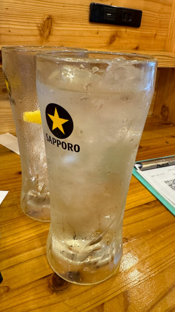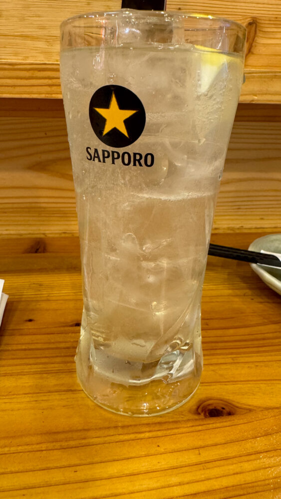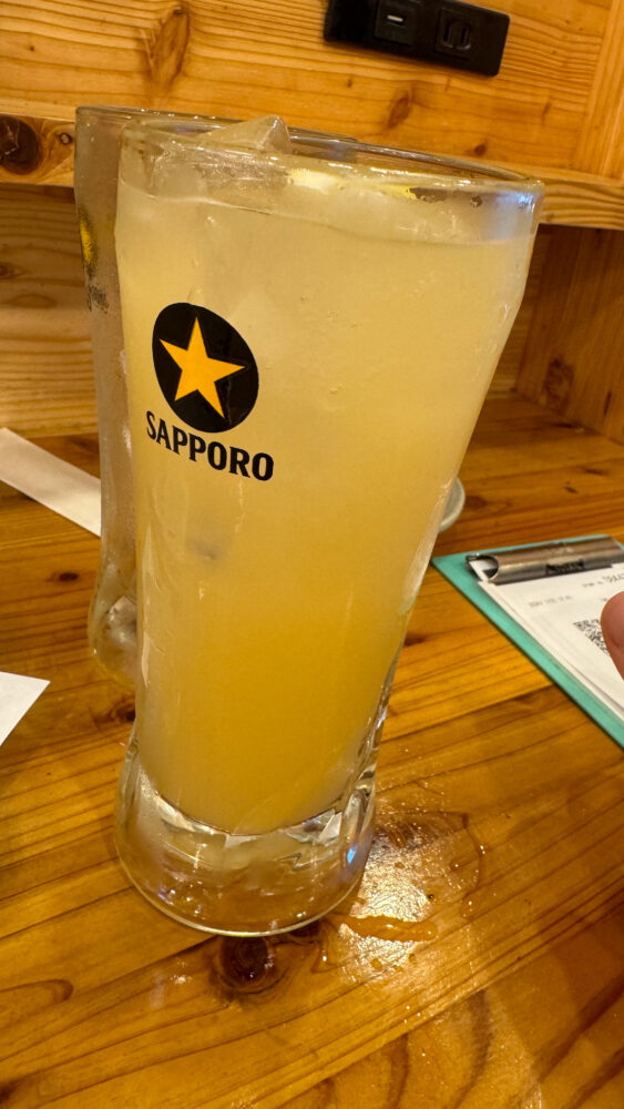 ▲1杯目はいつものレモンサワー。酸味も甘味もちょうど良い味わいで美味。