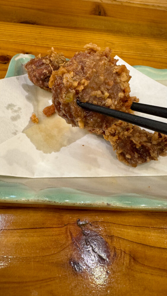 ▲外側はカリっとしていて、中は砂肝のコリコリ食感が面白い逸品。お酒にも合う味付け。