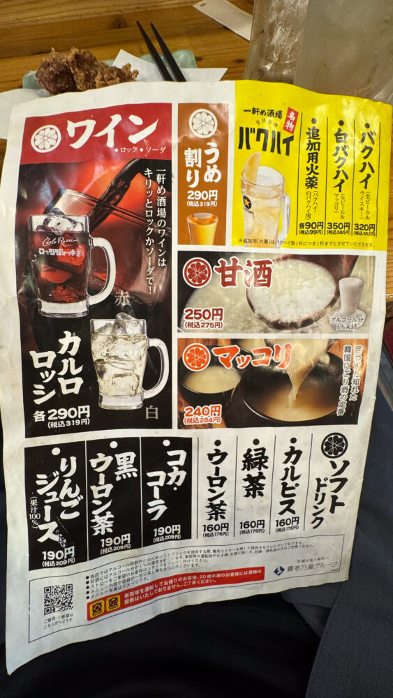 - 白バクハイ(生ビール&マッコリ):350円