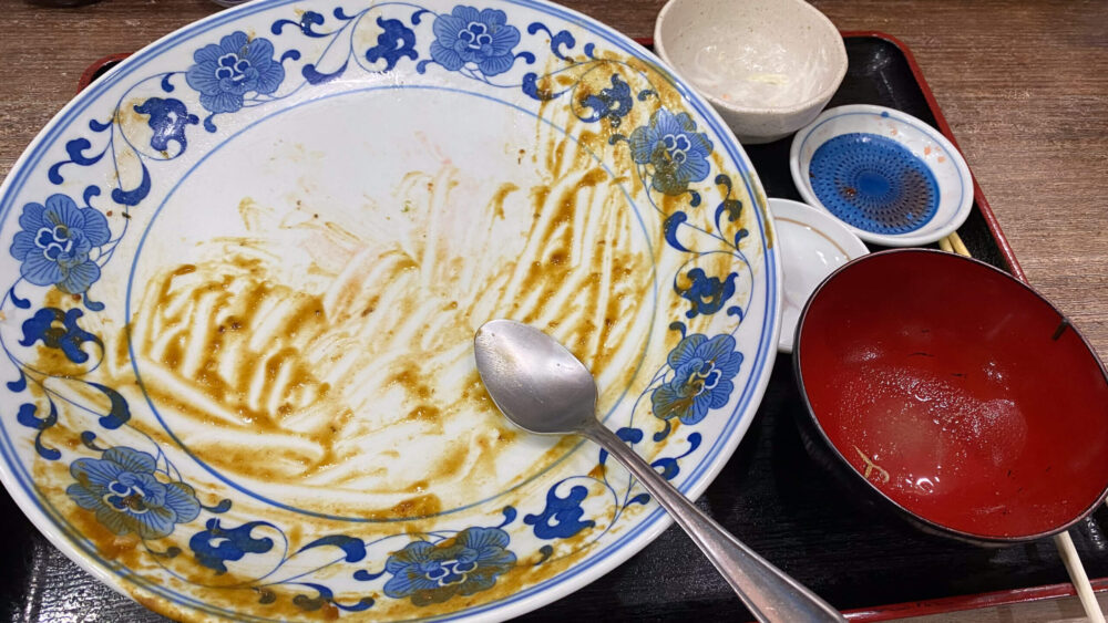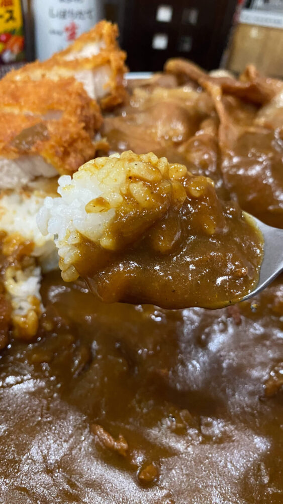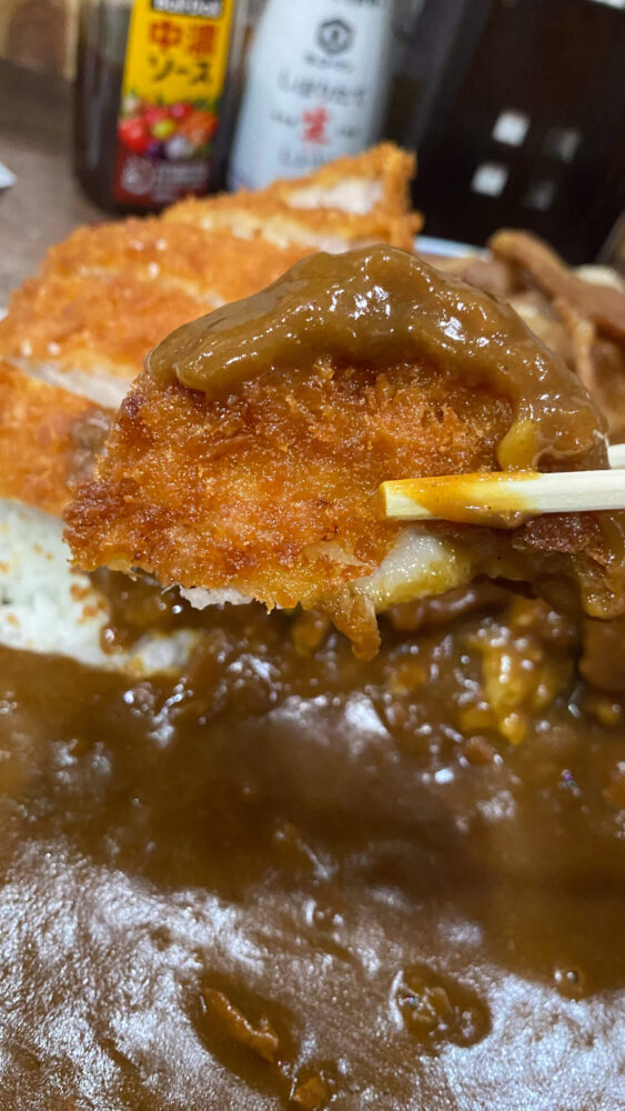カレー自体が食べやすかったのと、カツと焼肉で味変もできたので何とか完食できましたね。