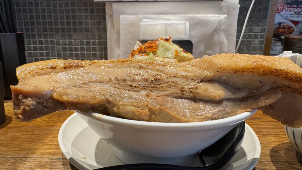 肉塊!じげ郎ちゃんぽんが着丼!メニュー名に違わぬ肉塊が丼をはみ出るくらいのビッグサイズで最高!