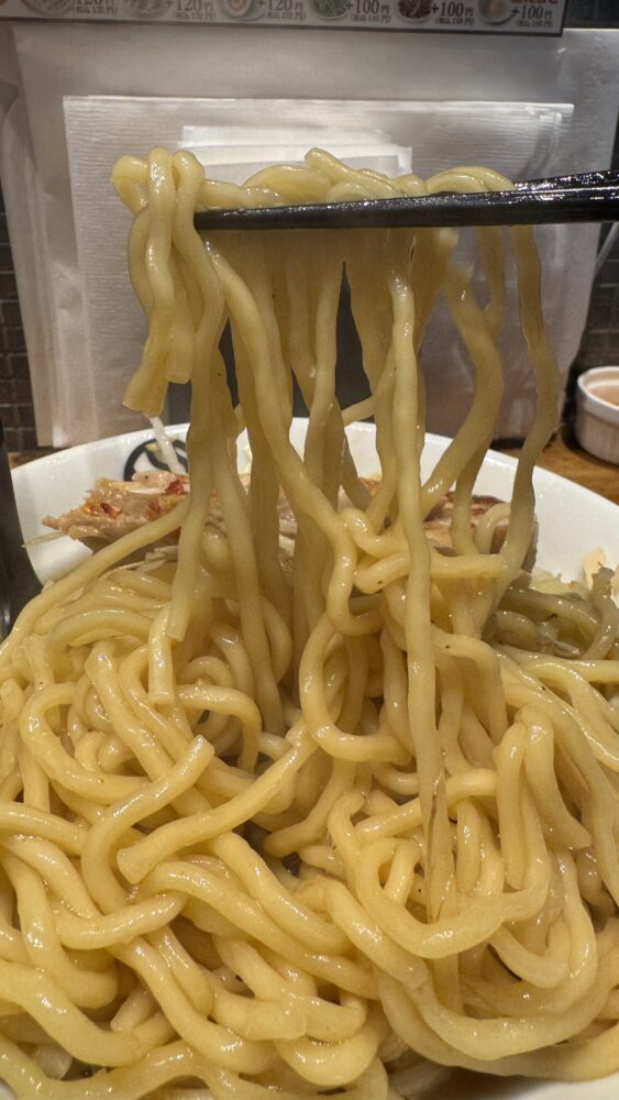▲麺は、モチプリ食感。旨味のあるスープが絡んで美味しい。