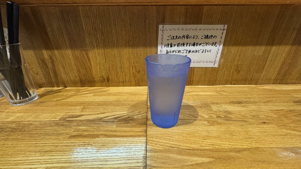あとはメニューが到着するまで水を飲んで待ちます。