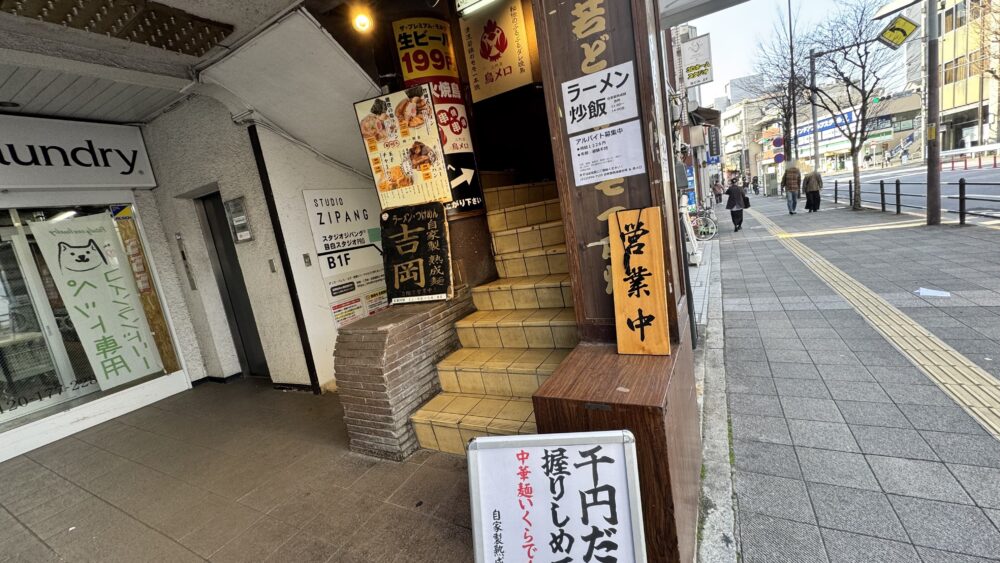 ▲お店は2階。階段付近の「千円だけ握りしめて来い!」というメッセージが強烈。