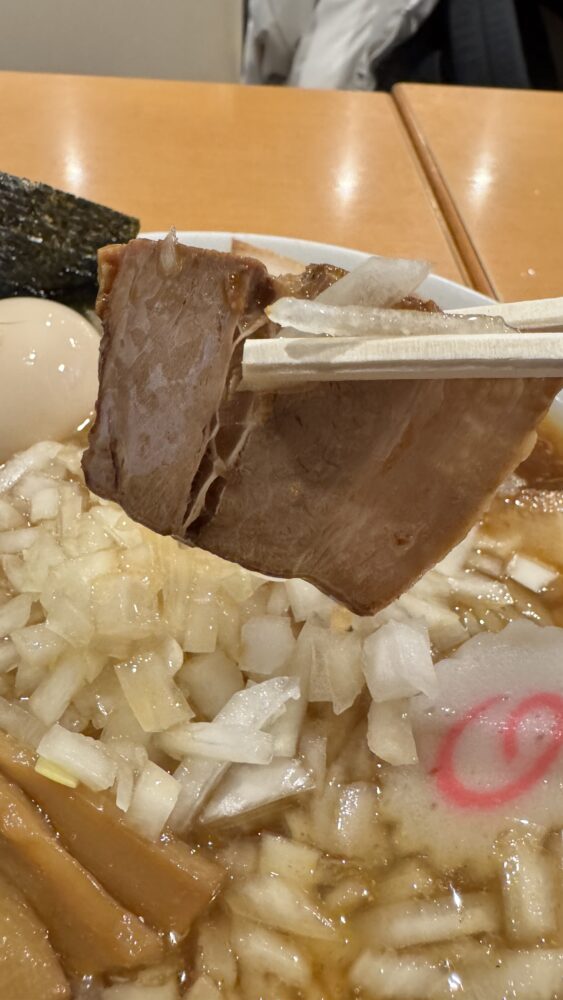 ▲チャーシューは、柔らかくて美味。単体ではやさしめの味付けで、スープと合わせるとちょうど良き。