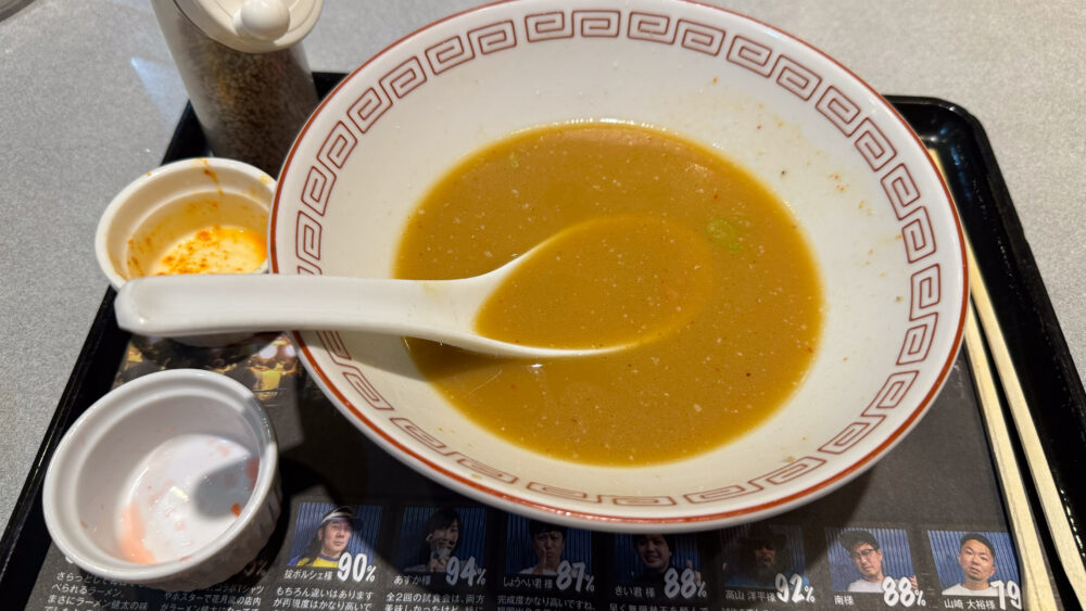 私は8玉でしたが、もう少しテンポ良く、かつもうちょっと味変をがんばれば、さらに1~2玉分をプラスできたかもしれません。