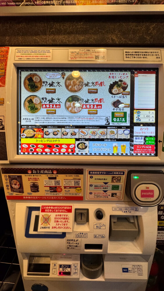 ▲デジタルな食券機で注文します。交通系ICでの決済も対応。