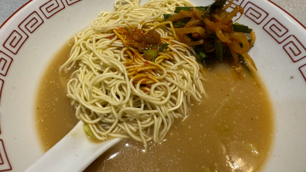 ▲2回目の替玉を注文。まだ味変なしですすっていきます。