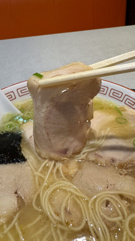 ▲チャーシューはしっとり食感で口の中でとろけます。肉増しにしたので4枚ほど楽しめるのが最高。