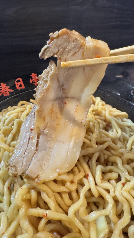 春日亭のしょうゆ油そばは、しっかりめの醤油ダレが絡んだモチプリ食感な縮れ麺が美味しかったです!