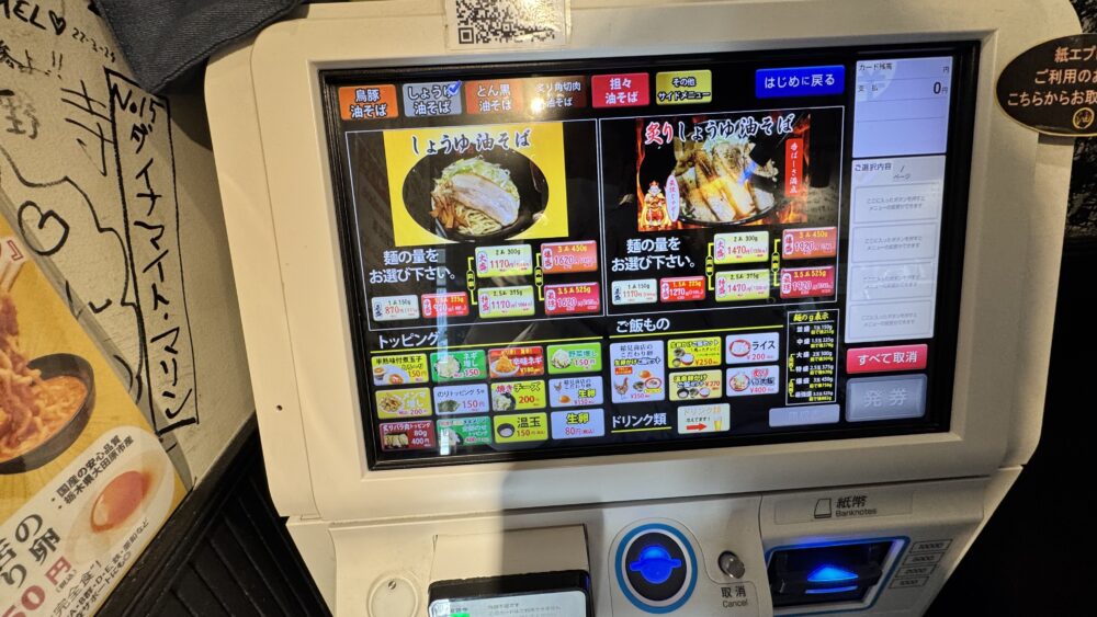 今回はしょうゆ油そば最強盛+ライス大盛を注文しました!