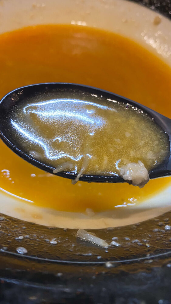 ▲麺を食べ終わったら、店員さんへお願いし割スープをいただきます。〆にほっこりやさしい味わい。