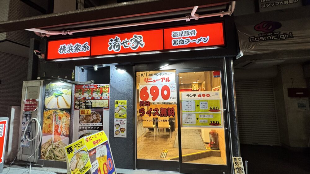 清瀬駅付近の家系ラーメン店の「横浜家系ラーメン 清せ家」。