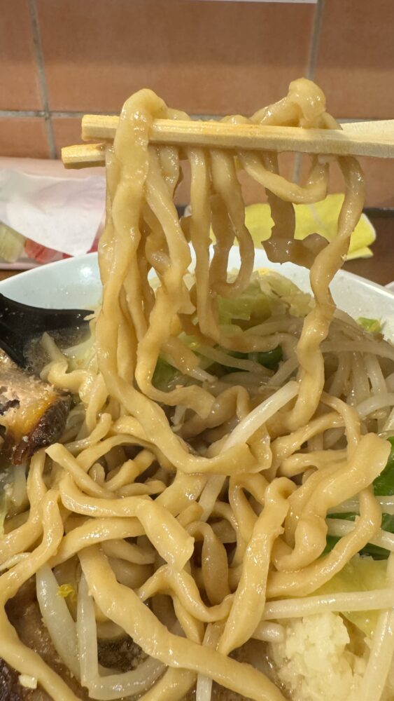 ▲麺は三河屋製麺製でワシっと食感。かなり本格的でスープをまとった麺が美味。