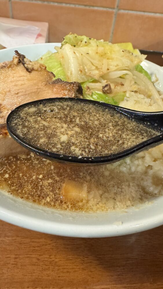 ▲スープは非乳化で醤油感強め。背油プカプカですね。