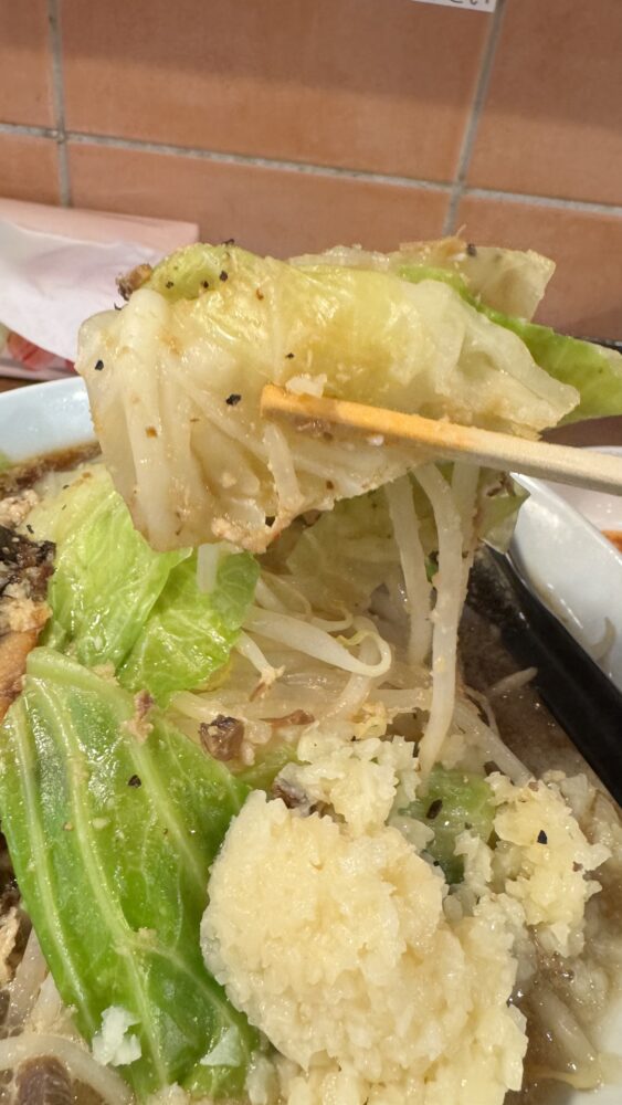▲野菜は標準的な茹で加減。キャベツ多めで甘め。