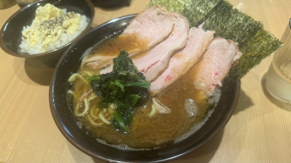 今回はチャーシューラーメン+ライス(食べ放題)を注文しました!