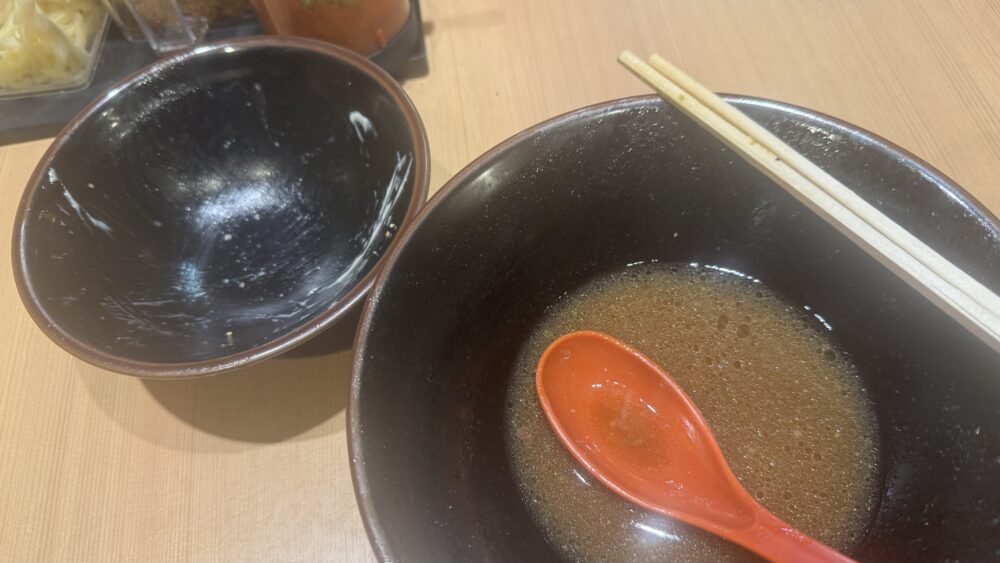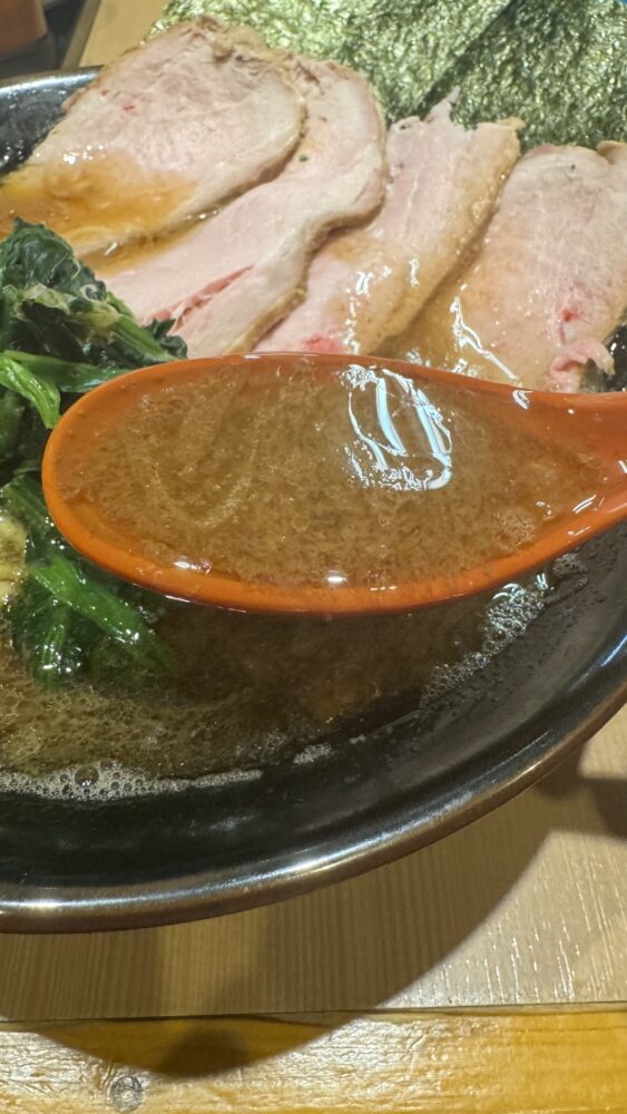 ▲スープは、濃いめ多めにしたので、醤油がキリっと効いて濃厚。ライスが進んで美味しい。