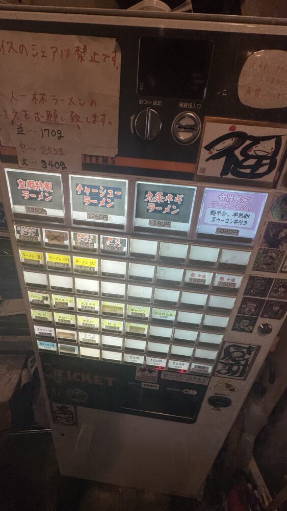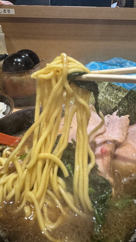 味の好み(麺の硬さ・味の濃さ・油の多さ)も聞かれますが、今回は「硬め濃いめ多め」でお願いしました。