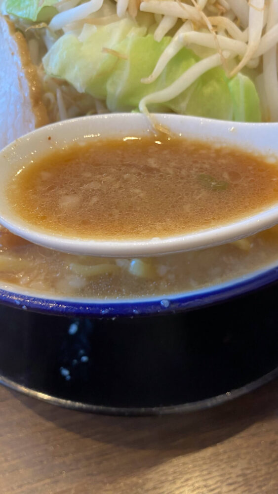 ▲スープは白味噌ベースでまろやかですが、ニンニクが効いて美味。
