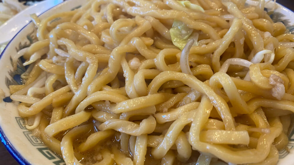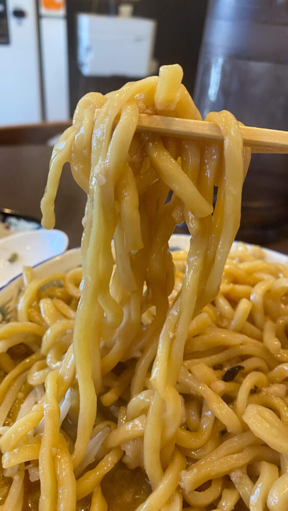 ▲麺はツルモチ食感。味噌味のスープを持ち上げてくれて旨し。
