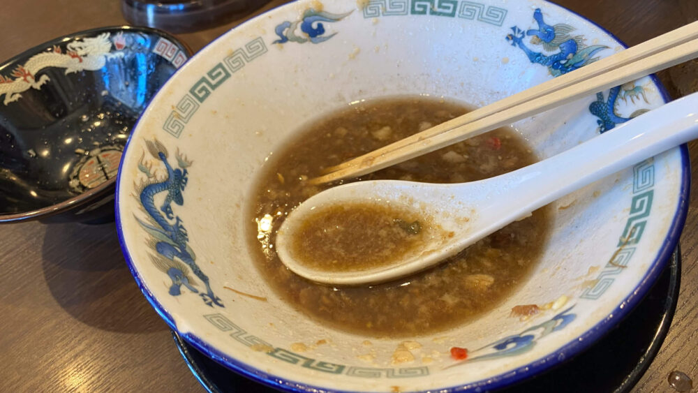 ▲さらに、卓上調味料のマー油を投入!香りとコクがアップするガッツリ系の味変でラストスパート!