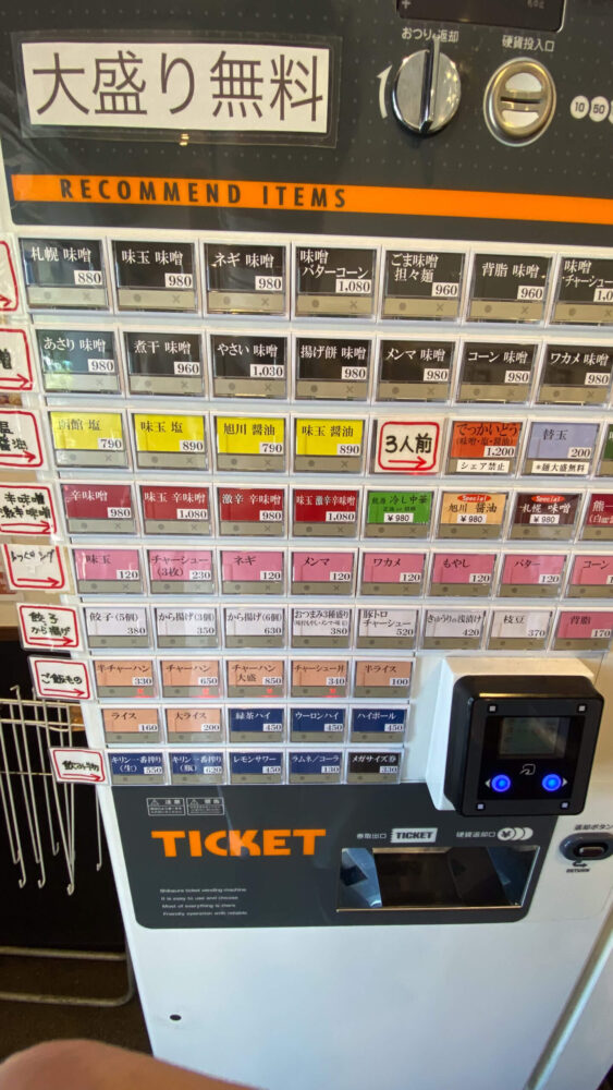 ▲食券機で注文します。交通系ICやQUICPay等での決済も可能。