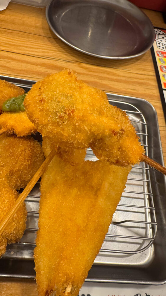 ▲串カツの第三陣。ラストは期間限定メニューから2本選びました。