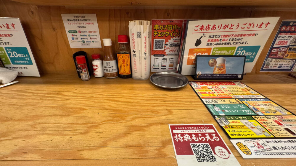 串カツ田中は、串カツ以外にもポテトサラダやかすうどん、ポテリコなど美味しいメニューが豊富です。
