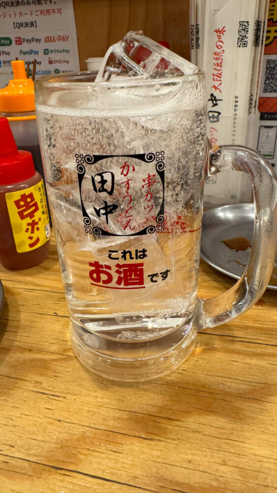 ▲ジムビームハイボールをチンチロリンにしましたが奇数でメガジョッキ(税込900円)。量も金額も倍に。揚げ物に合います!