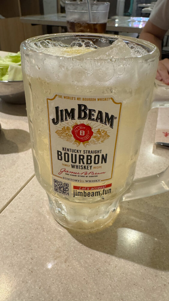 ▲ラストに3杯目のジムビームハイボールをお替り。チンチロリン3回目は奇数で倍額倍量。もはやメガはご褒美ですね。