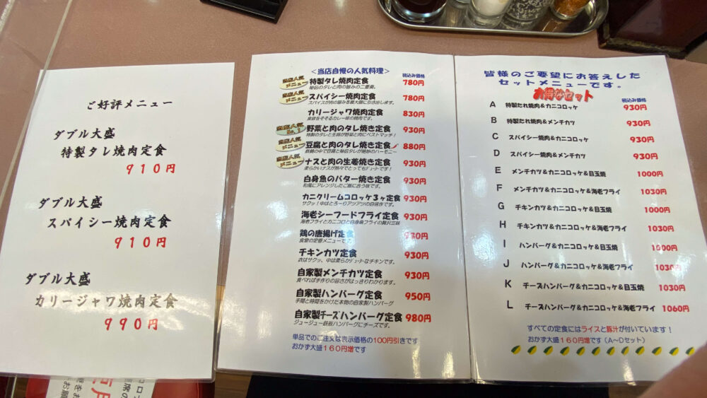 特製タレ焼肉定食やカリージャワ焼肉定食あたりが気になります。