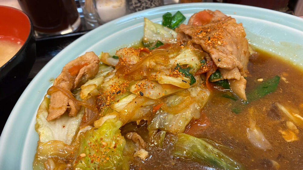 ▲野菜と肉のタレ焼きは回鍋肉っぽい味付け。野菜部分はキャベツや玉ねぎ、にんじん、ニラなど。