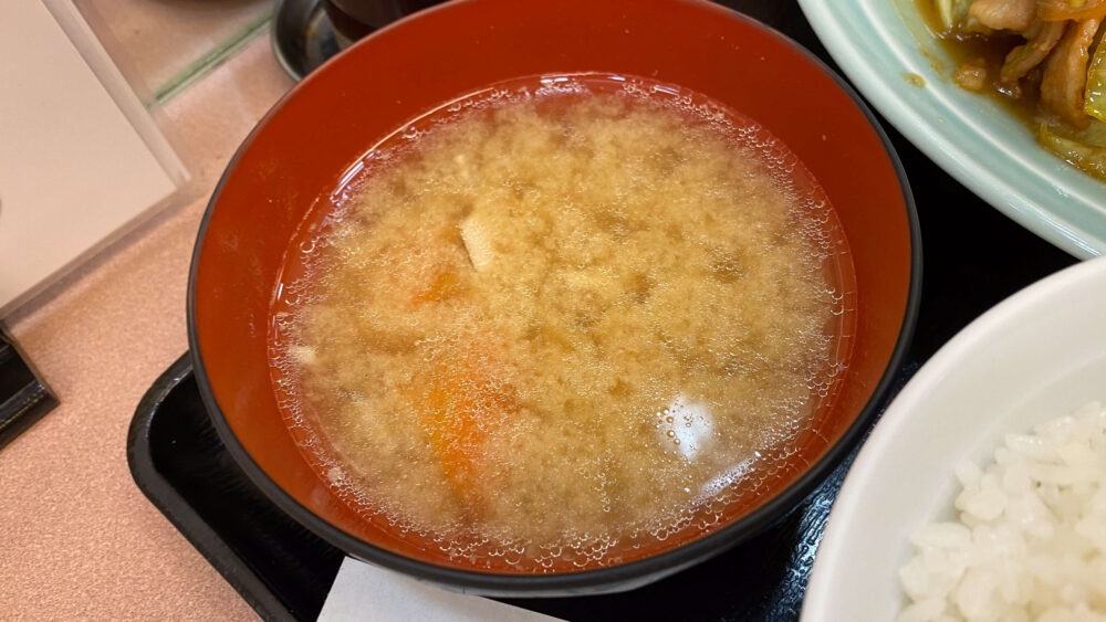 ▲味噌汁は豚汁なのが嬉しい。飲むとほっこりします。